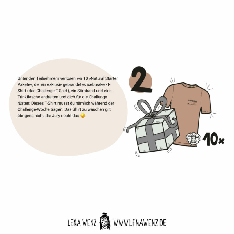 Wer die Challenge erfolgreich meistert – also an 7 Tagen mindestens jeweils einen Beitrag im Challenge-T-Shirt gepostet hatte –, konnte einen 1.000 EUR-Gutschein für icebreaker-Ausrüstung bei Globetrotter gewinnen. Eine outdoorerprobte und von lustigen, authentischen und besonderen Fotos beindruckbare Jury wählte den Sieger aus.