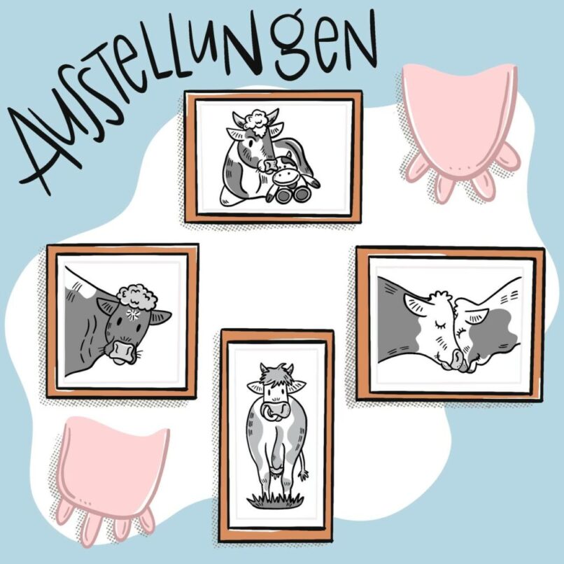 Illustrationen für die Kategorien beim it’s cowtime Shop und auf der Homepage.