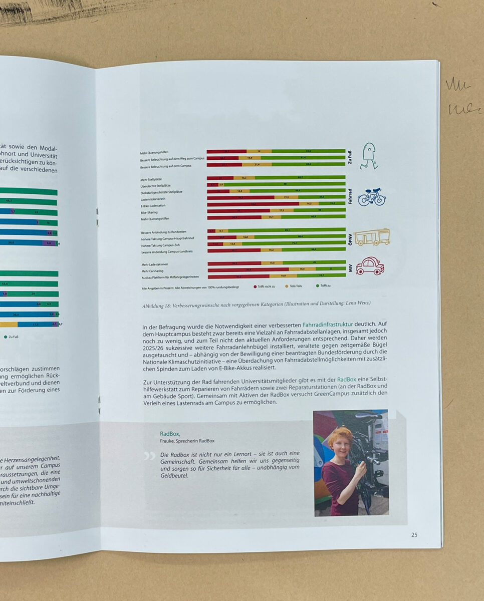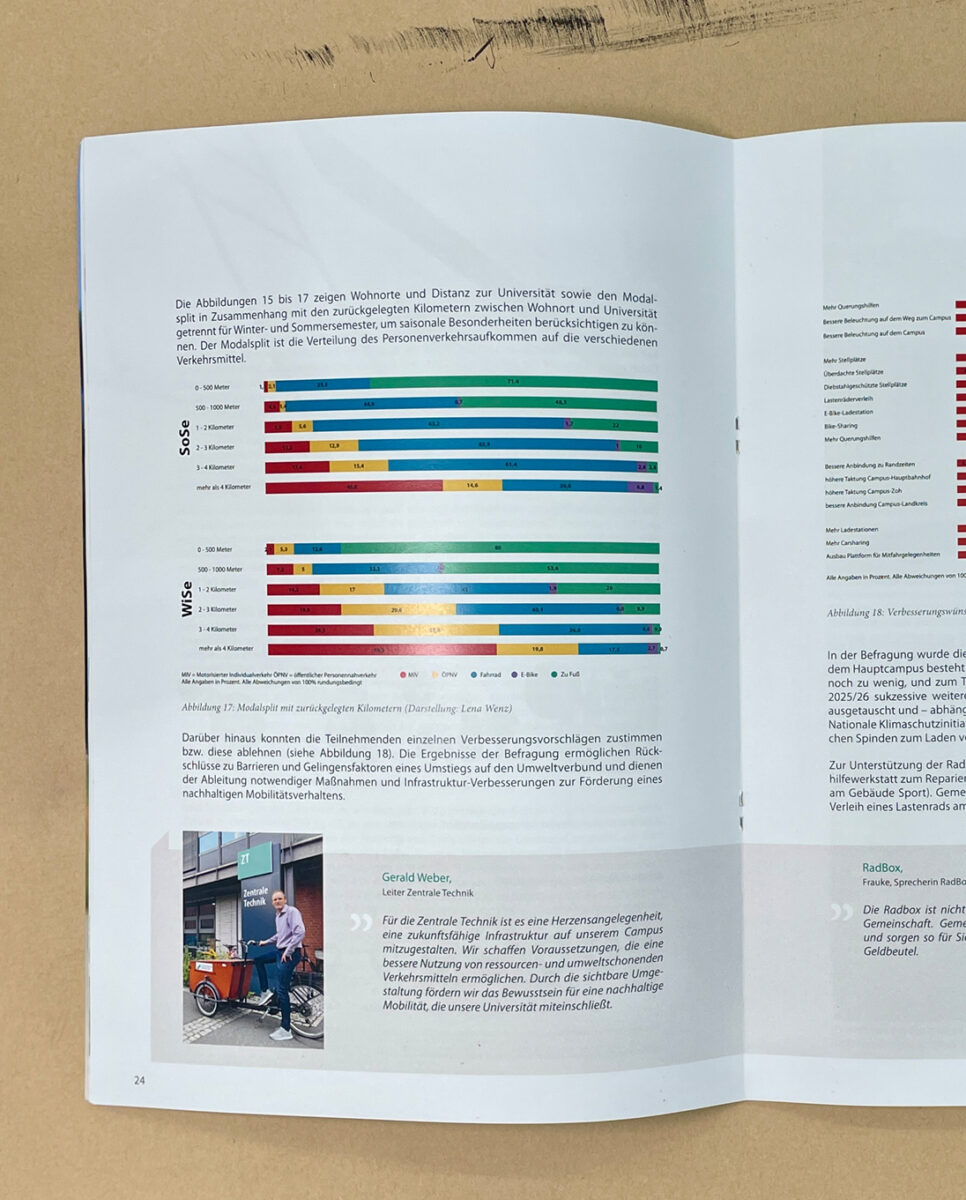 Meine Arbeit ist mit in der Kleinstauflage des Nachhaltigkeitsberichts 2025 sowie auf der Homepage der Universität zu finden hier: Mobilitätsbefragung der Universität Bayreuth